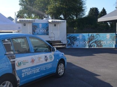 Check out a sample of mesh screening we designed and installed around the building for our Open House celebration (they effectively blocked foot traffic to off-limit areas, while matching the look, feel and theme of the event).